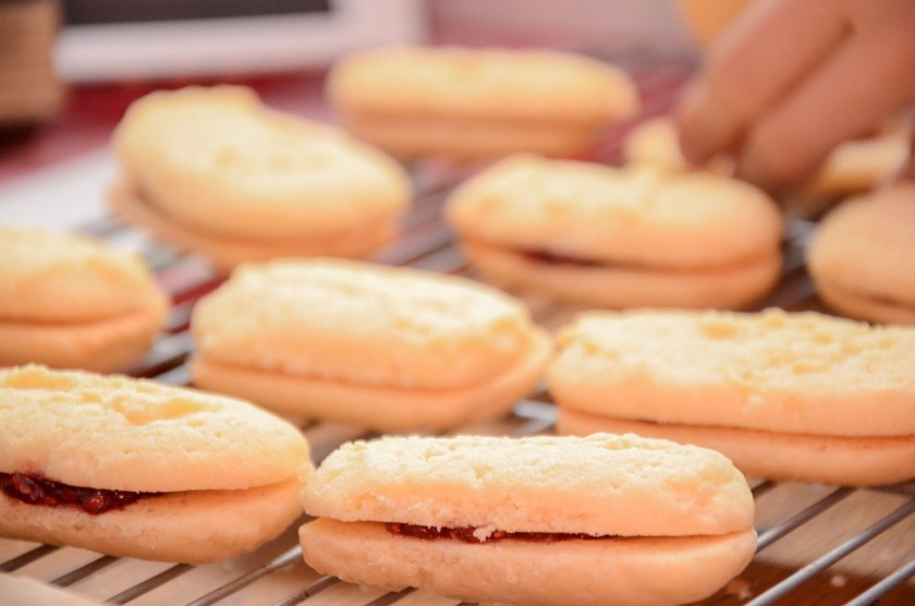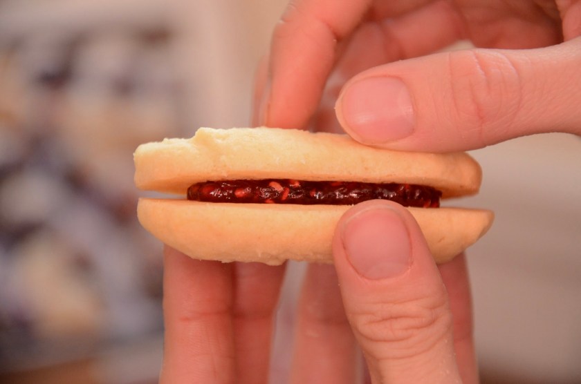 I filled these with raspberry preserves because the recipe said any kind and that’s what felt the most “bakery” to me.
