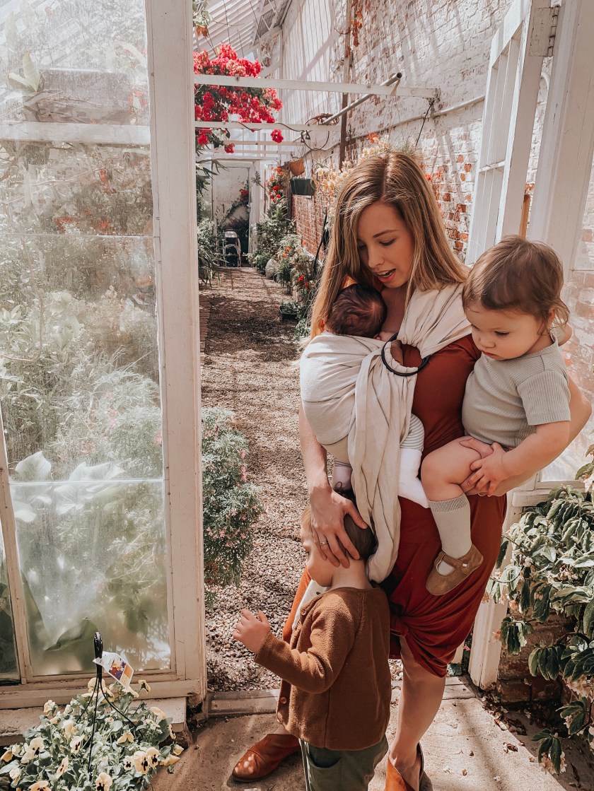People ask me how it is to have three under three. Simply put: it’s hard! It is definitely hard and we all have our strengths and weaknesses. One of my strengths is that I’m high energy and I can generally keep up with my kids! Physically I don’t struggle if I need to carry one or two at a time either. I’m the oldest of seven kids and I’ve spent my whole life around children. Wearing one kid in a sling makes it that much easier for me to carry two if necessary.
